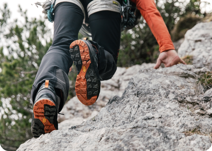 - Vibram Approach podplat: Izjemen oprijem tudi na najzahtevnejših površinah, posebej zasnovan za plezalne pristope.